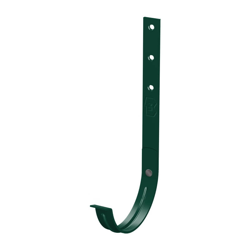 Держатель желоба водостока d125х280мм RAL 6005 Зеленый металлический усиленный - для фиксации желобов на кровле, обеспечивает крепление желоба к подконструкции кровли крыши, устанавливается на стропила под кровельное покрытие в процессе монтажа. Держатель желоба изготовлен из однородной стали толщиной 3 мм, что обеспечивает максимальную надежность крепления.