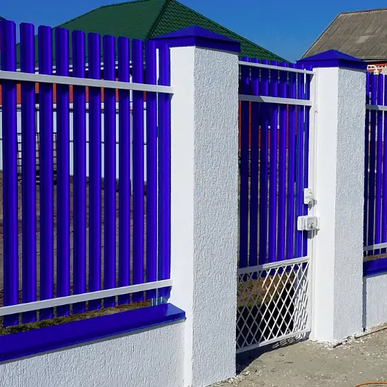 Надёжность, стиль и безупречная эстетика — всё это в нашем заборе из металлического штакетника RAL5002 Синий Ультрамарин. Глубокий насыщенный оттенок придаёт участку элегантность и выразительность, а двустороннее покрытие полиэстер надёжно защищает металл от солнца, дождя и времени. Аккуратные парапеты и колпаки в цвет завершают образ, создавая ощущение завершённости и уюта.